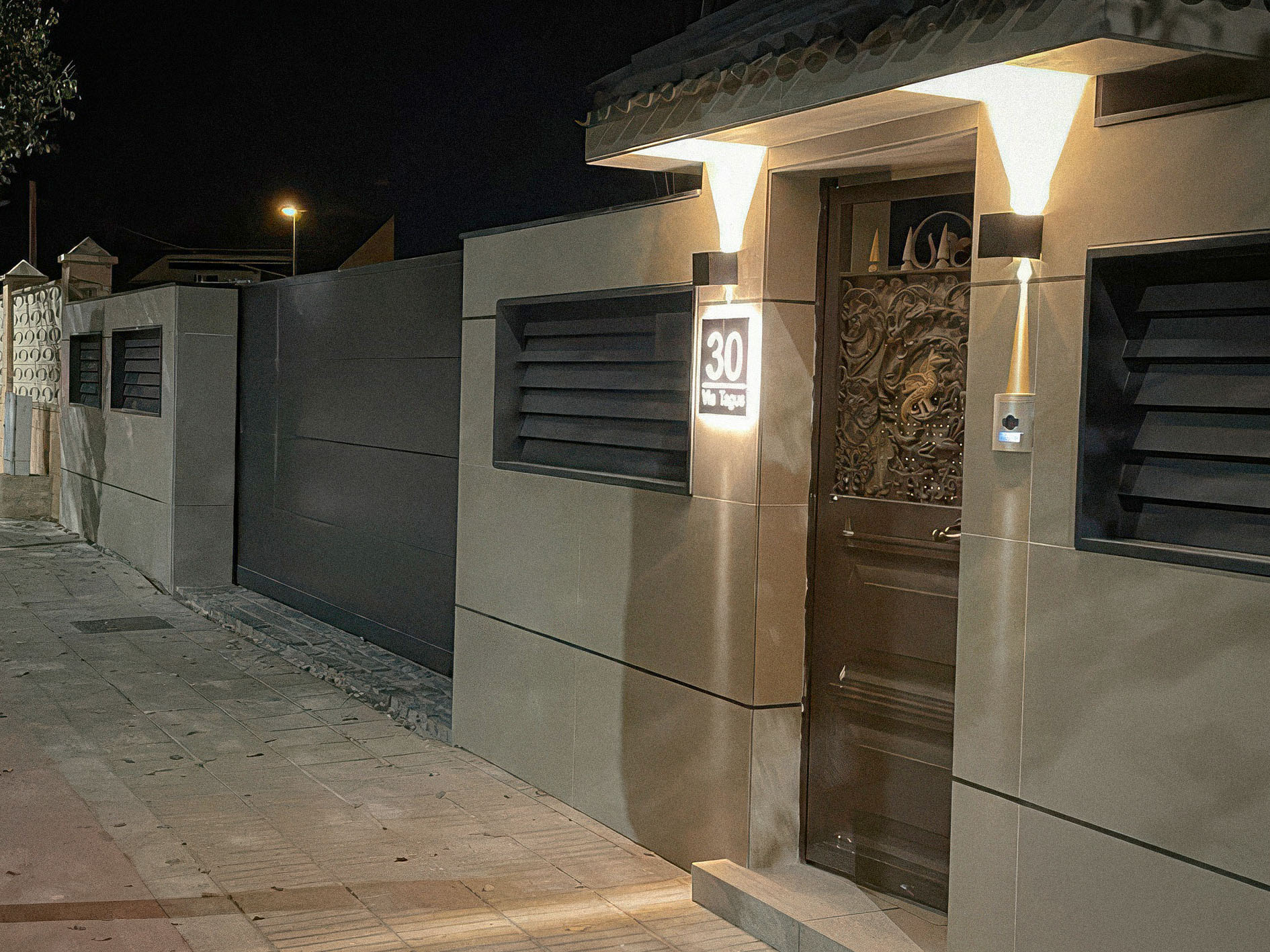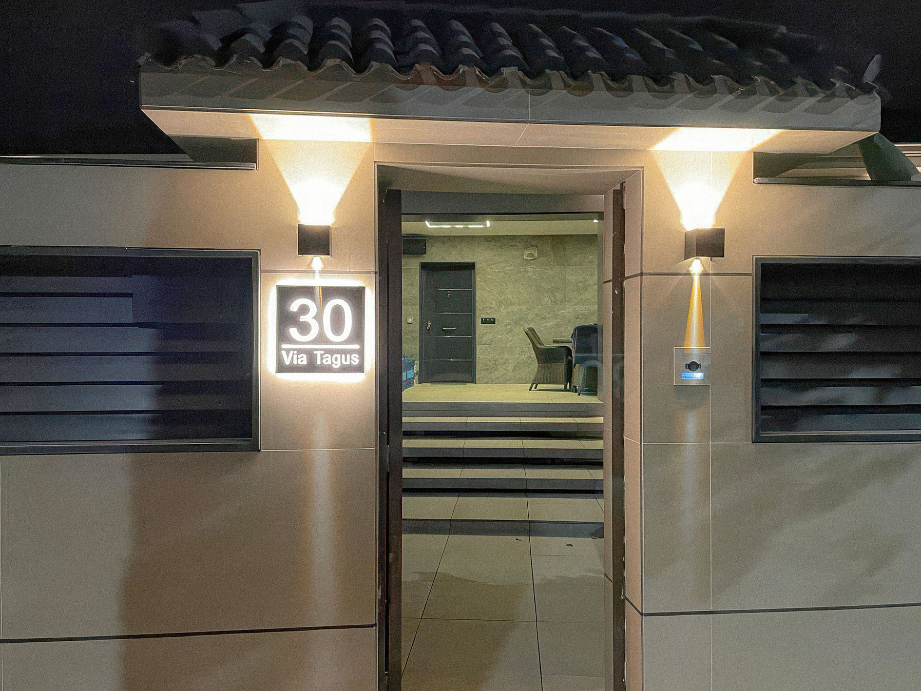 Revestimiento de gres porcelánico liso tanto en fachada como escalera para un acabado elegante y contemporáneo. El objetivo del proyecto es crear un diseño suave, minimalista y uniforme que ofrezca una gran resistencia al desgaste y la humedad.